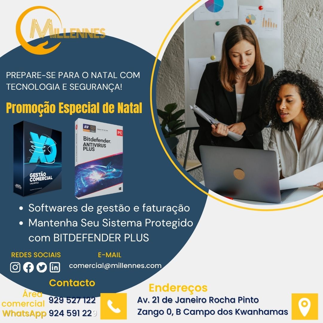 Venda de antivírus renomados, como Bitdefender e Kaspersky, para proteger sistemas contra ameaças online.