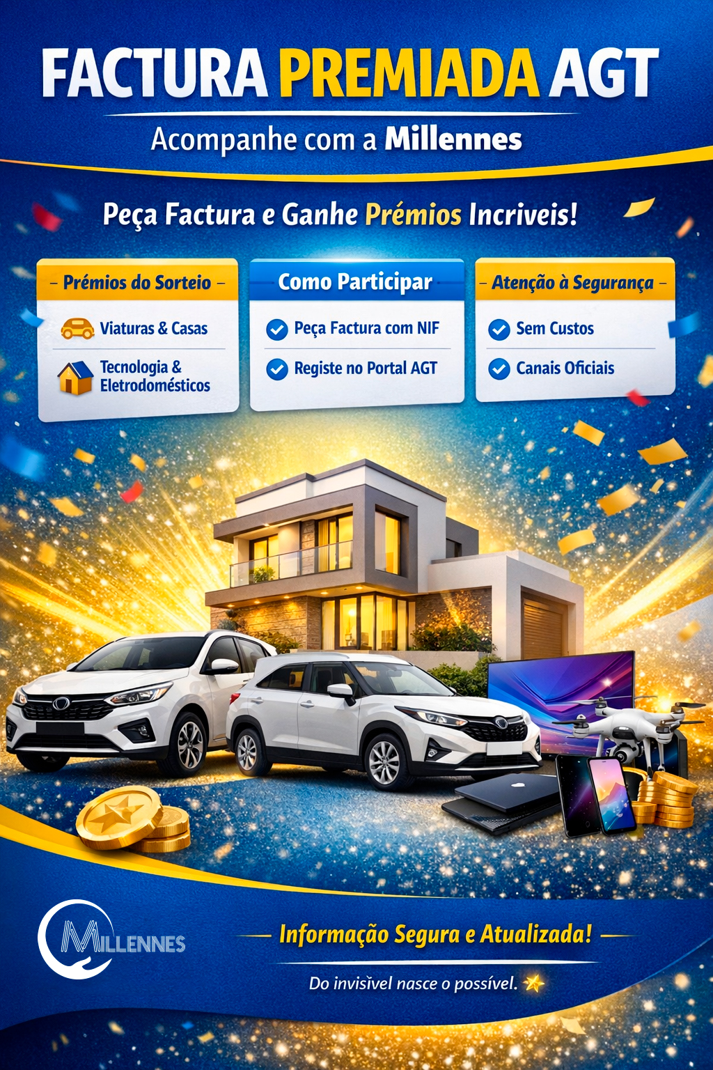 A Administração Geral Tributária (AGT) está a realizar o programa “Factura Premiada”, uma iniciativa nacional que incentiva os cidadãos a pedirem factura nas suas compras,